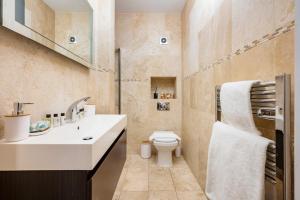 The property sits within close proximity to several notable landmarks including Charing Cross and Trafalgar Square, both 400 metres away. Guests can also easily reach Sondheim Theatre, The National Gallery, and Prince Edward Theatre. The vibrant city centre is only 600 metres from the apartment while London City Airport lies 14 km away.