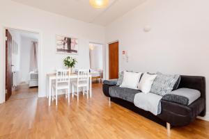 This spacious apartment features one living room, two separate bedrooms, and one bathroom equipped with either a bath or shower along with complimentary toiletries. Guests can prepare meals in the fully equipped kitchen that includes an oven, stovetop, refrigerator, dishwasher, microwave and kitchenware as well as tea and coffee making facilities. The accommodation provides four beds across its rooms alongside parquet flooring, air conditioning heating system, additional in-room amenities include a flat-screen TV with streaming services such as Netflix, ironing facilities including iron and ironing board, soundproofed walls, seating area with sofa, work desk, wardrobe or closet space, non-feather synthetic pillows, clothes drying rack, washing machine plus linens such as bed linen and towels.