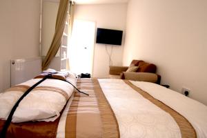 Le logement propose une cuisine entièrement équipée avec réfrigérateur, micro-ondes, table à manger et coin cuisine pour préparer les repas aisément. L’espace de vie comporte un fer et une planche à repasser ainsi qu’un lave-linge. Le salon chauffé présente un sol moquetté ainsi que des prises près des lits et des adaptateurs de voyage pour plus de confort.