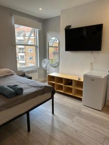 Inside the studio apartment, guests will find a flat-screen TV for entertainment along with access to a private bathroom ensuring privacy and convenience during their stay. The fully equipped kitchen allows for cooking meals or storing food according to individual preferences.
