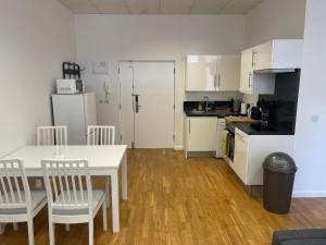 The accommodation features a fully equipped kitchen with kitchenette facilities, allowing guests to prepare meals conveniently during their stay. The apartment includes heating to ensure warmth along with a washing machine for added practicality. Entertainment needs are met by a flat-screen TV in the living area.