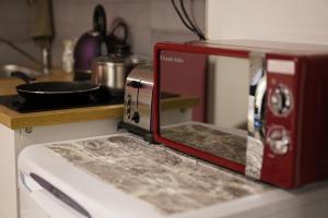 The accommodation comprises one bedroom with one bed, along with a fully equipped kitchenette that features a stovetop, refrigerator, microwave, toaster, kitchenware and an electric kettle as well as a dining table for convenience. Additional in-room amenities include heating, wardrobe/closet space, ironing facilities including an iron and clothes drying rack, washing machine, baby cot/crib option upon request and hardwood flooring.
